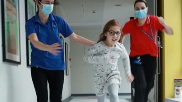 Addie came to The Children’s Trust for rehabilitation to increase her strength and mobility after an operation to reduce the frequency of her epileptic seizures. She wanted to run around with her twin sister, Izzy, and her friends again.